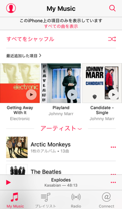 ロックの解除をしたら、ミュージックアプリが開きます。